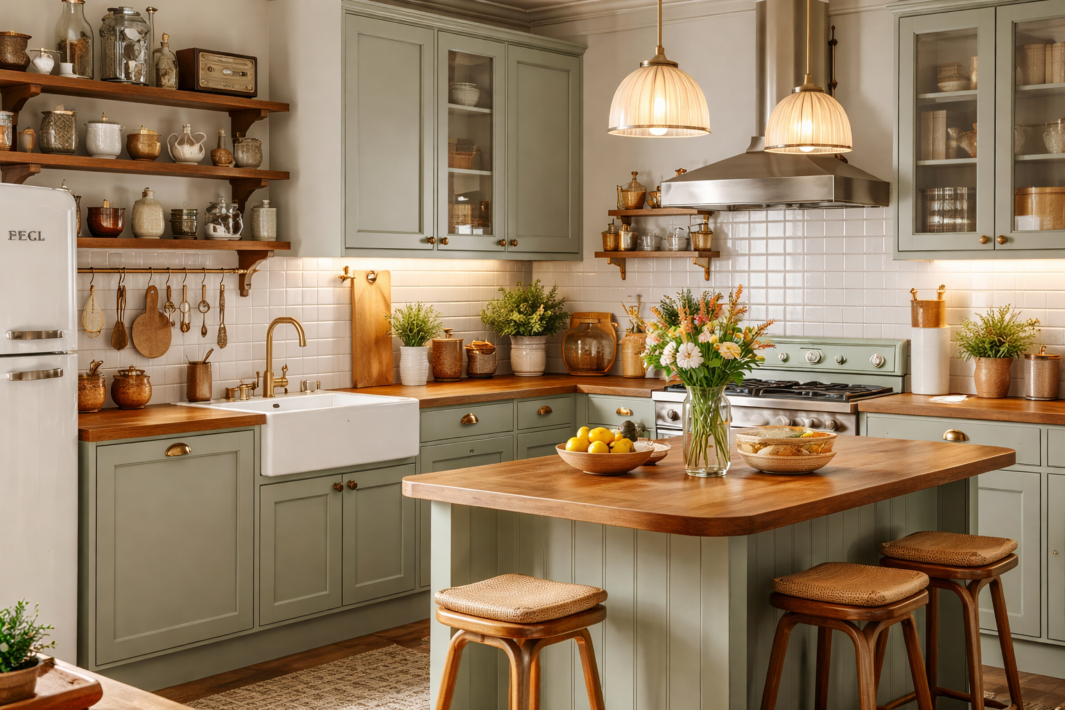 Najczęstszy błąd to próba „zrobienia retro wszędzie”. Kuchnia to przestrzeń użytkowa i musi pozostać czytelna.